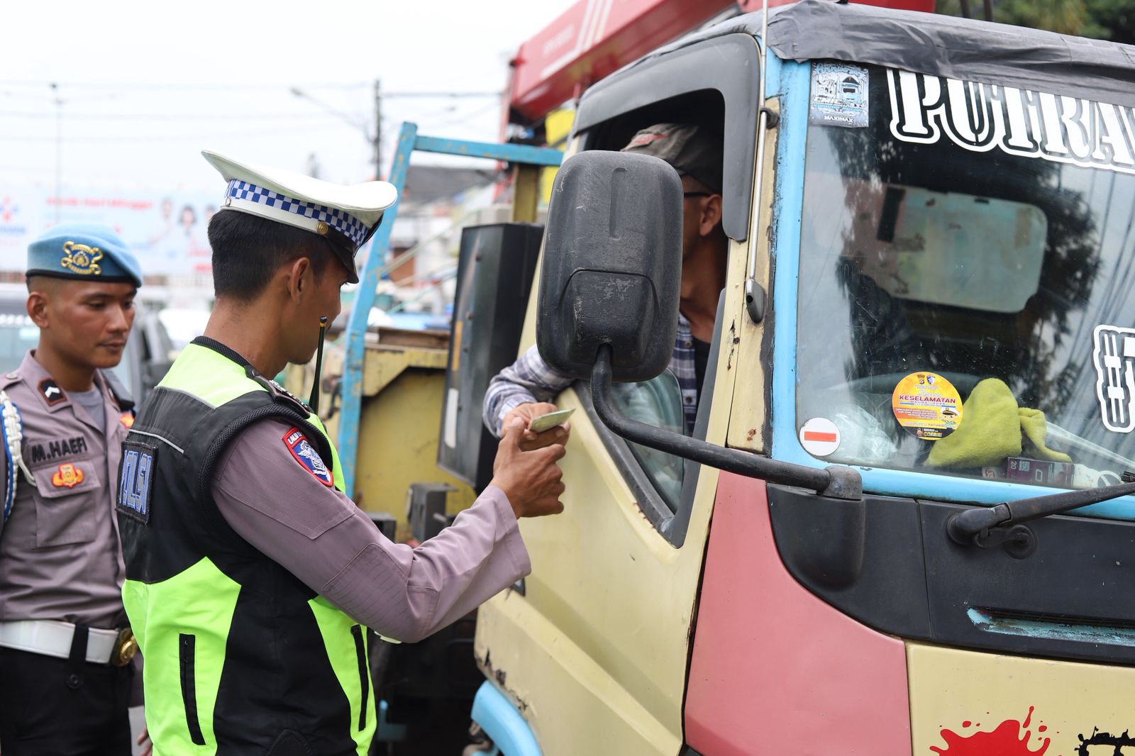 Dalam operasi tersebut, personel Sat Lantas melakukan pemeriksaan kelengkapan kendaraan serta penegakan hukum terhadap pengemudi yang melanggar aturan lalu lintas, khususnya truk bermuatan besar yang melintas di kawasan kota pada jam operasional yang dibatasi.