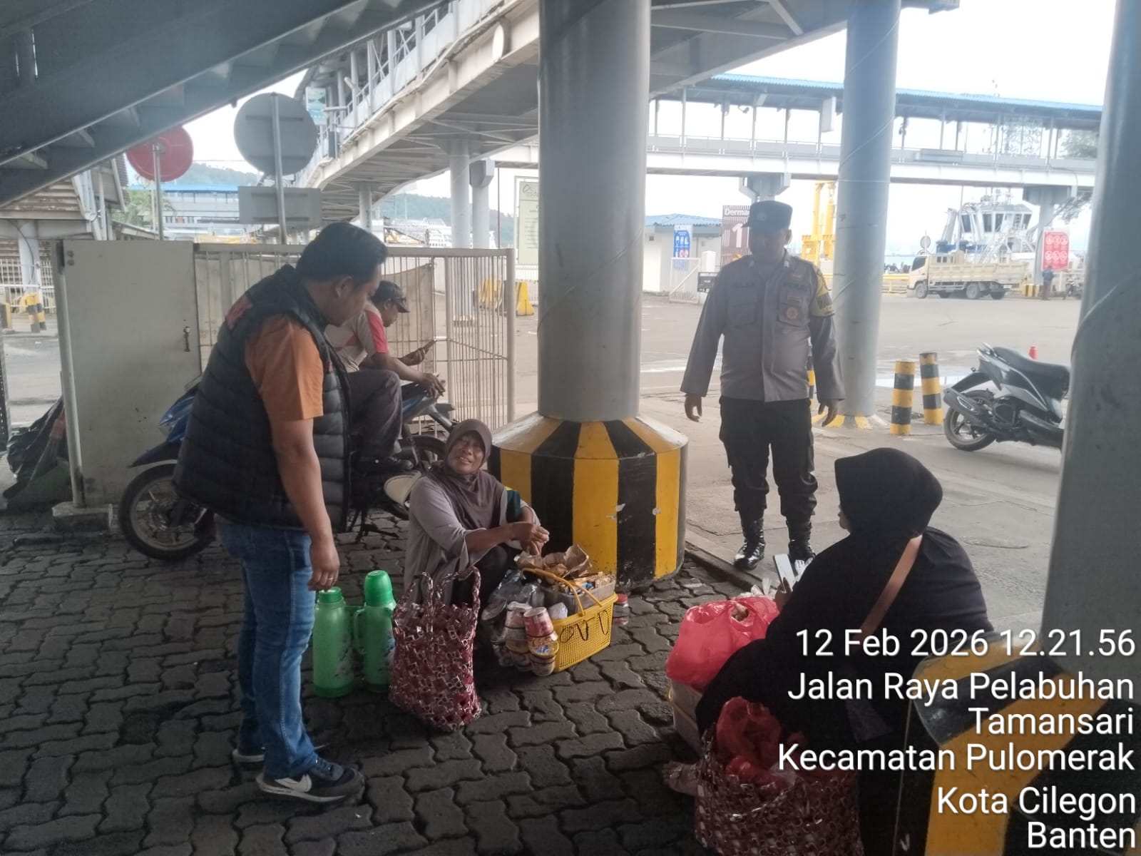 Cilegon - Personel Polsek Kskp Merak Polres Cilegon Polda Banten melaksanakan sambang dan patroli kawasan pelabuhan merak dalam rangka menjaga Harkamtibmas di Kawasan Pelabuhan Merak, Kamis (12/02/2026).