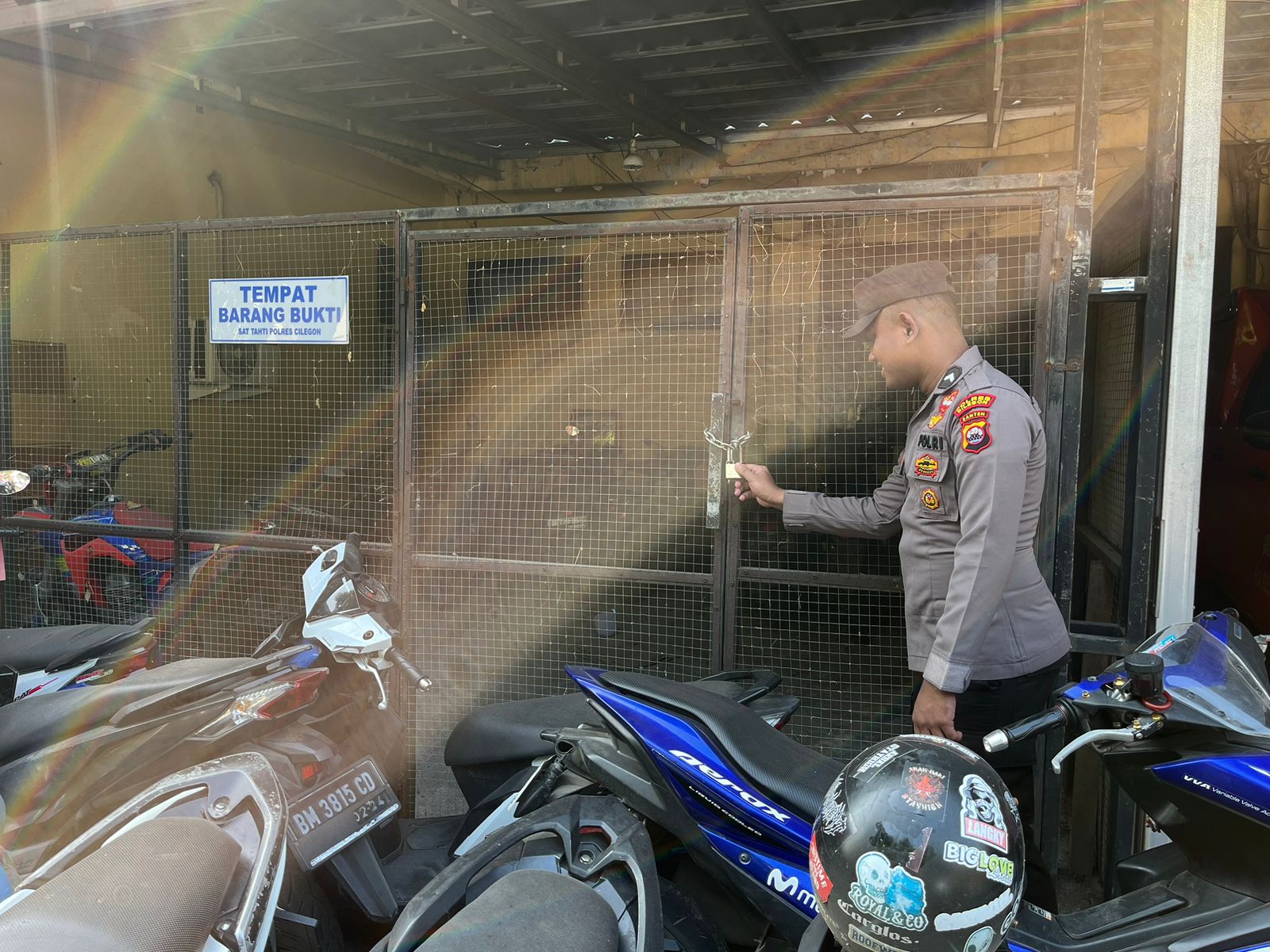 Cilegon, Polres Cilegon Polda Banten. Di gudang barang bukti Polres Cilegon. Kapolres Cilegon Polda Banten AKBP Dr. Martua Raja Taripar Laut Silitonga,S.H,.S.I.K.,M.Si Kepada Kasat Tahti Polres Cilegon Iptu Yudi Hartono mengingatkan agar anggota piket sattahti agar tetap terus kontrol barang bukti yang sudah dititipkan di sattahti polres cilegon.(15/02/2026)