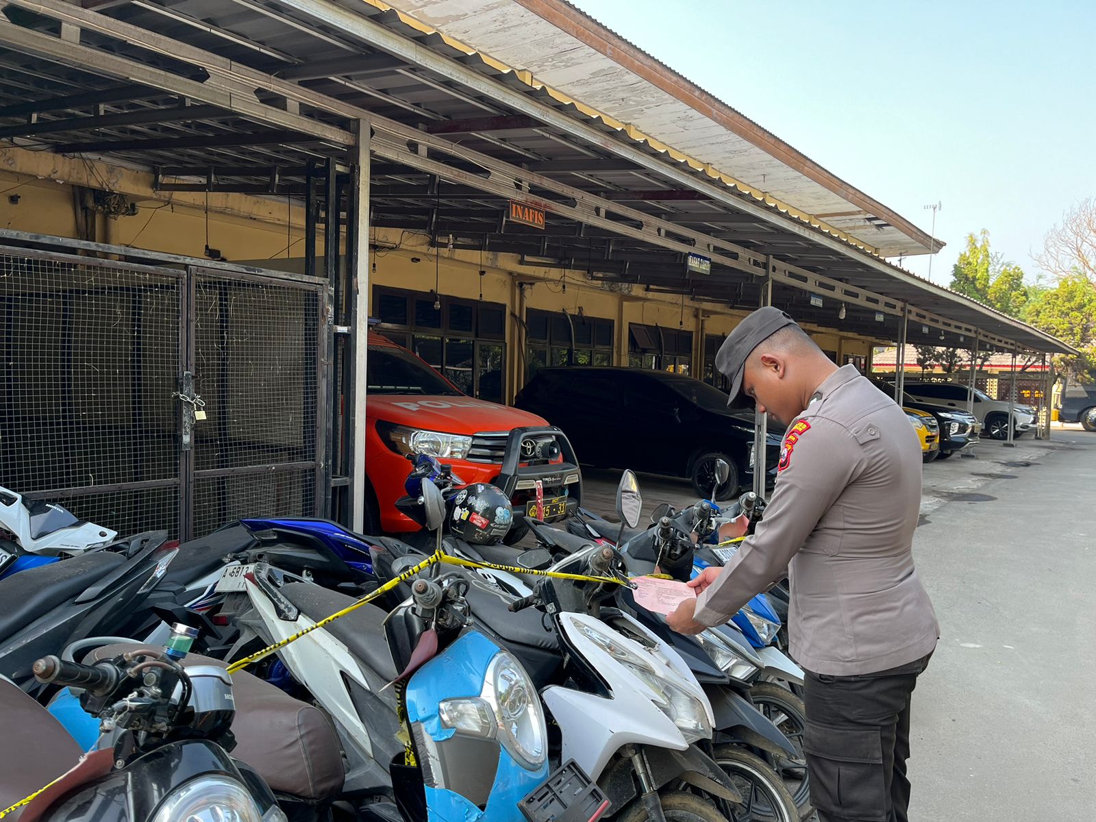 Cilegon, Polres Cilegon Polda Banten. Di gudang barang bukti Polres Cilegon. Kapolres Cilegon Polda Banten AKBP Dr.  Martua Raja Taripar Laut Silitonga,S.H,.S.I.K.,M.Si  Kepada Kasat Tahti Polres Cilegon Iptu Yudi Hartono mengingatkan agar anggota piket sattahti agar tetap terus kontrol barang bukti yang sudah dititipkan di sattahti polres cilegon.(15/02/2026)