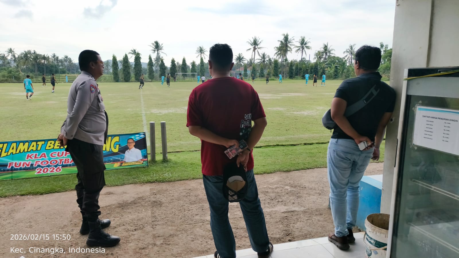 Cilegon - Dalam Rangka Mencegah Terjadinya Gangguan Kamtibmas, Personil Polsek Ciwandan Polres Cilegon Polda Banten Laksanakan Pengamanan Turnamen Fun Football yang Bertempat Di Stadion 5 Oktober Kelurahan Kubangsari Kecamatan Ciwandan, Minggu (15/02/2026).