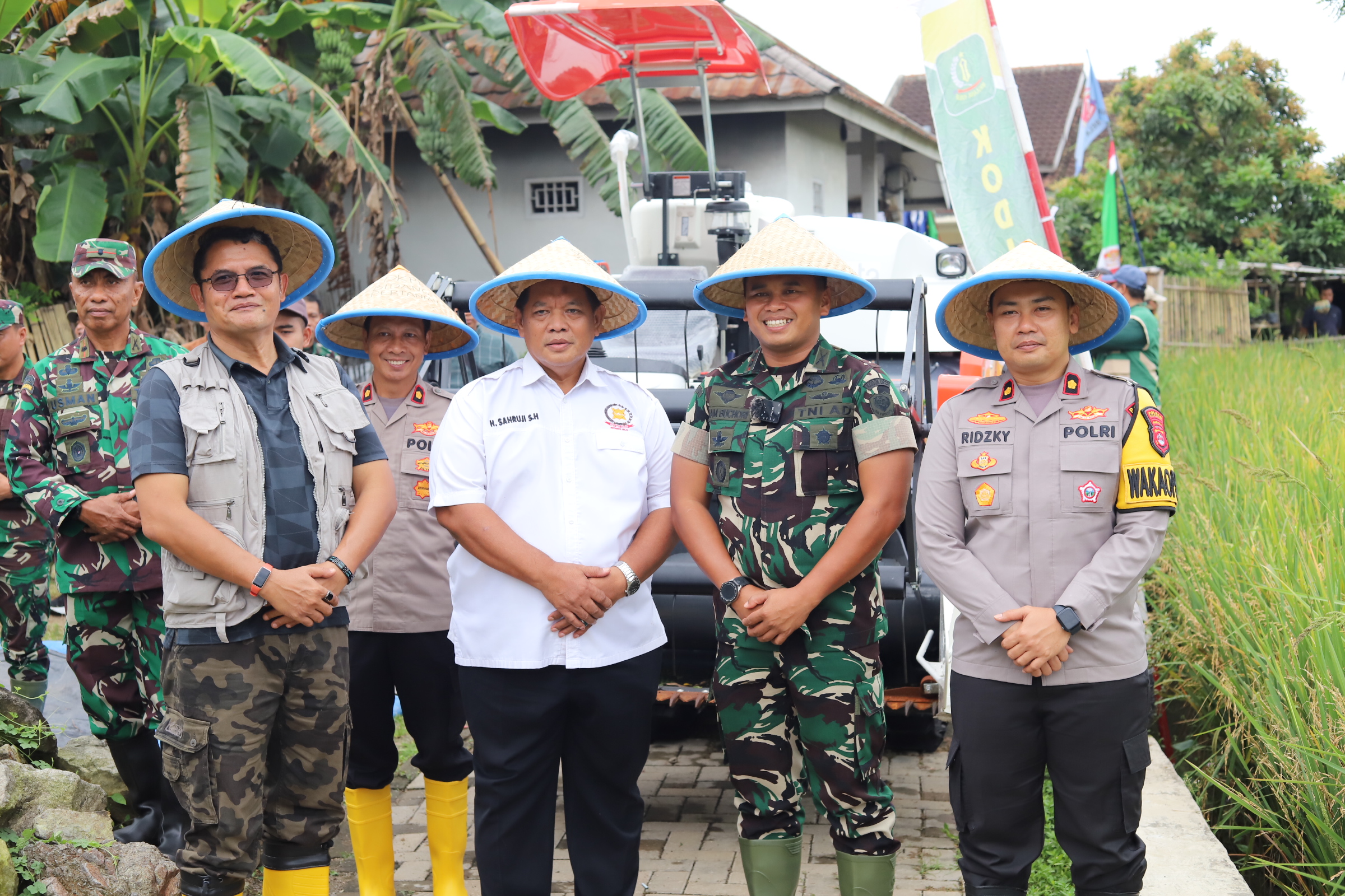 Kegiatan dilanjutkan dengan pembacaan doa dan prosesi panen raya padi secara simbolis. Suasana kegiatan berlangsung penuh keakraban, mencerminkan kebersamaan dan kepedulian seluruh unsur terhadap keberlanjutan sektor pangan.