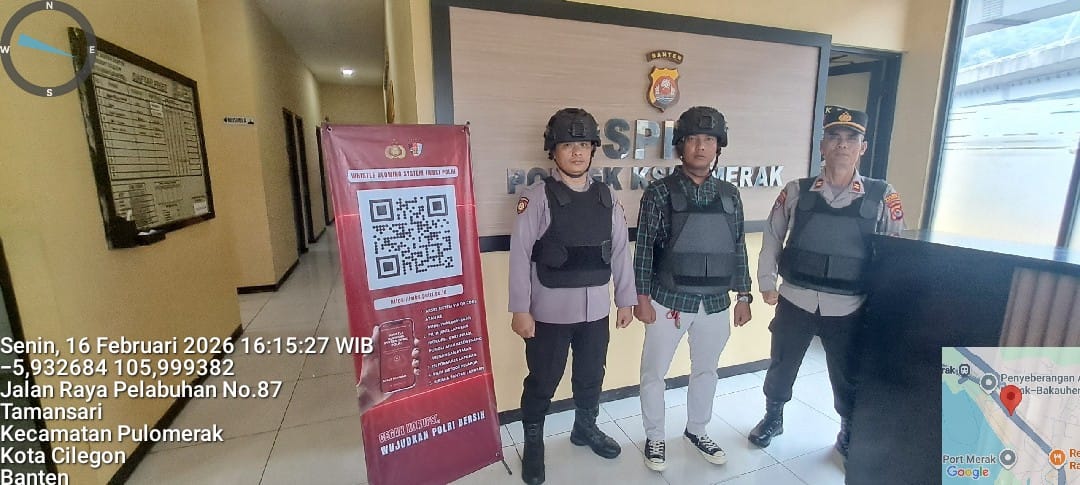 Cilegon - Personel piket jaga Polsek Kskp Merak Polres Cilgon Polda Banten melaksanakan siaga 1 Polsek pelaksanaan Sispam Mako oleh piket siaga dipimpin oleh Kspk Polsek Kskpy Merak Polres Cilegon Polda Banten, Senin (16/02/2026).