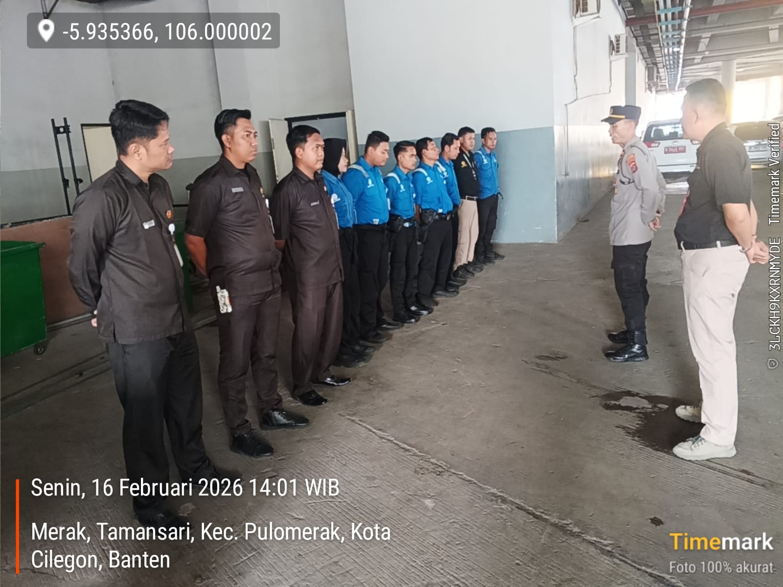 Cilegon - Personil Polsek Kskp Merak Polres Cilegon Polda Banten Laksanakan Pembinaan Scurity Guna Memelihara Harkamtibmas, Sebagai Petugas satuan pengamanan atau security merupakan bagian dari mitra dan kepanjang tanganan tugas Polri yang membantu melaksanakan pengamanan di daerah binaannya, Senin (16/02/2026).
