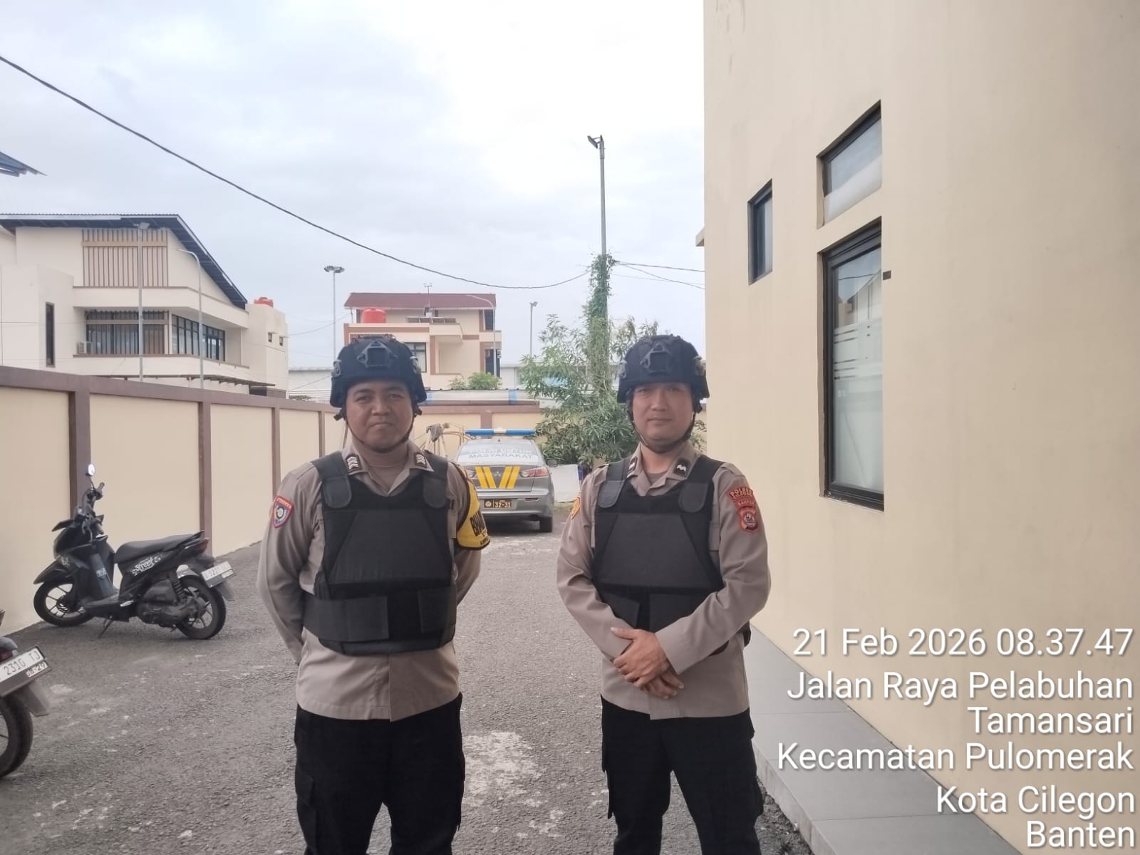 Cilegon - Personel piket jaga Polsek Kskp Merak Polres Cilgon Polda Banten melaksanakan siaga 1 Polsek pelaksanaan Sispam Mako oleh piket siaga dipimpin oleh Kspk Polsek Kskpy Merak Polres Cilegon Polda Banten, Sabtu (21/02/2026).