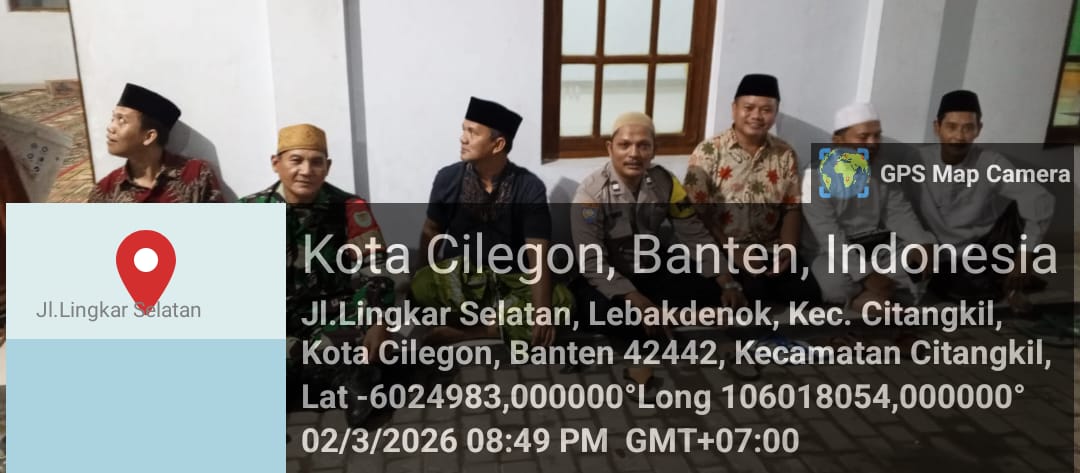 Cilegon - Bhabinkamtibmas Polsek Ciwandan Polres Cilegon Polda Banten melaksanakan kegiatan Sholat Tarawih Keliling (Tarling) di Mesjid Daerah Binaannya, Senin (02/03/2026).