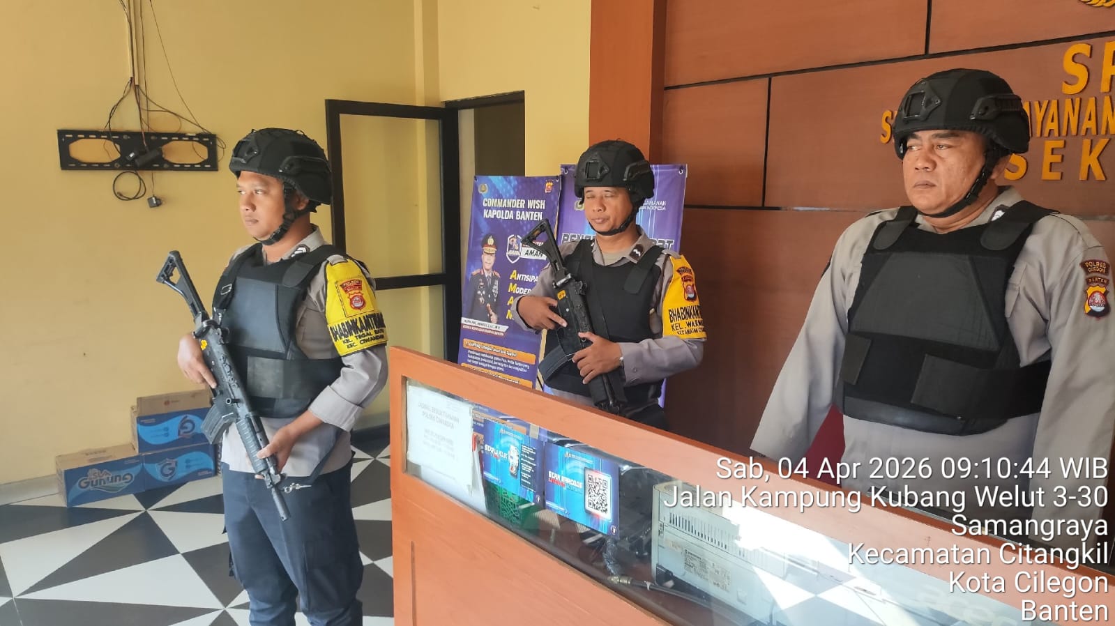 Cilegon - Guna mengantisipasi adanya potensi ancaman dan gangguan terhadap keamanan kantor maupun keselamatan personel piket jaga, Personil Polsek Ciwandan Polres Cilegon Polda Banten selalu tingkatkan kesiapsiagaan dan kewaspadaan dengan rutin menggelar kegiatan Sistem Pengamanan Mako (Sispam Mako), Sabtu (04/04/2026).