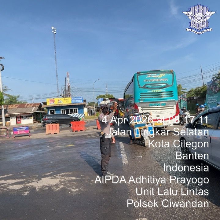 Cilegon - Guna Kelancaran Arus Lalu-Lalu-lintas Jalur Wisata Yang ada di daerah hukum Polsek Ciwandan Polres Cilegon Polda Banten,Para Wisatawan menuju Pantai Anyer-Cinangka, Personil Polsek Ciwandan Polres Cilegon Polda Banten Laksanakan Pengaturan Dan Rekayasa Lalu-lintas Wisata, Sabtu (04/04/2026).