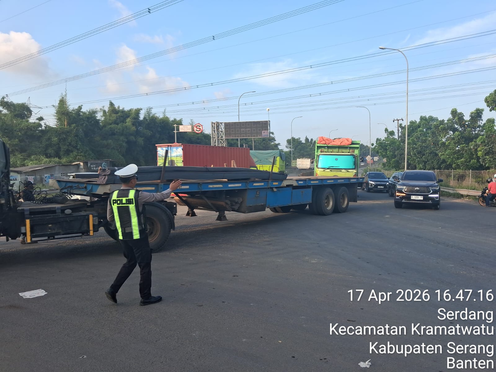 Cilegon, Satlantas Polres Cilegon Polda Banten – Berikan pelayanan kepada masyarakat Kasat lantas Polres Cilegon AKP Ridwan memerintahkan jajaran lalulintas untuk melaksanakan pengaturan lalu lintas di penggal – penggal jalan yang rawan kemacetan di Kota Cilegon, (Sabtu,18/4/2026)