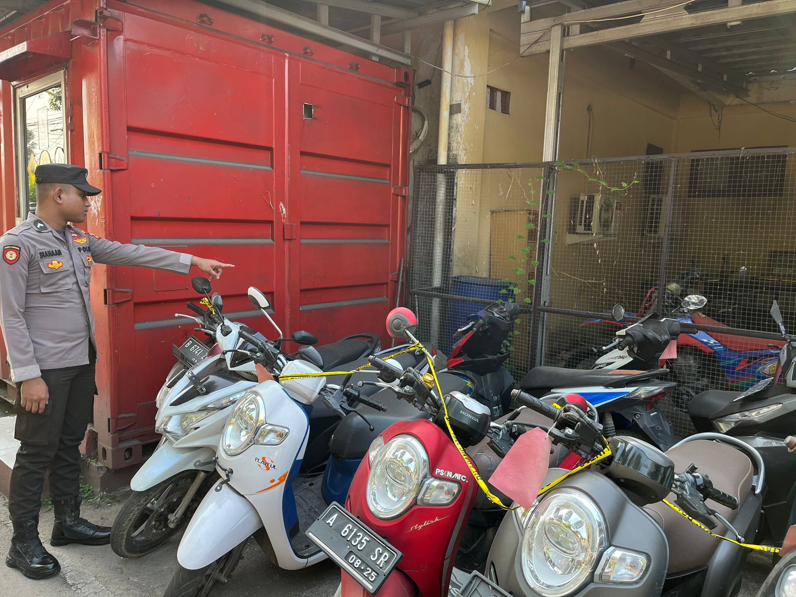 Cilegon, Polres Cilegon Polda Banten. Di gudang barang bukti Polres Cilegon. Anggota SatTahti polres cilegon mengecek barang bukti. (18/04/2026)