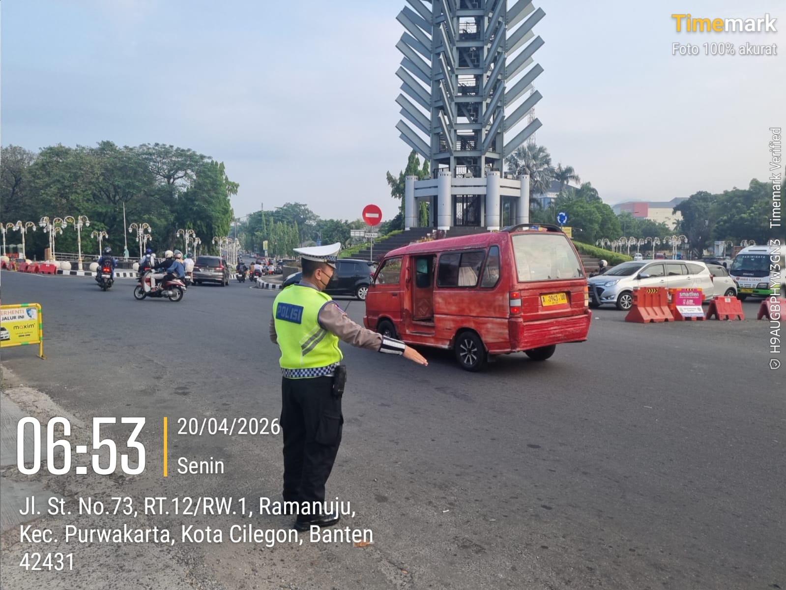 Cilegon, Satlantas Polres Cilegon Polda Banten – Berikan pelayanan kepada masyarakat Kasat lantas Polres Cilegon AKP Ridwan memerintahkan jajaran lalulintas untuk melaksanakan pengaturan lalu lintas di penggal – penggal jalan yang rawan kemacetan di Kota Cilegon, (Senin,20/4/2026)